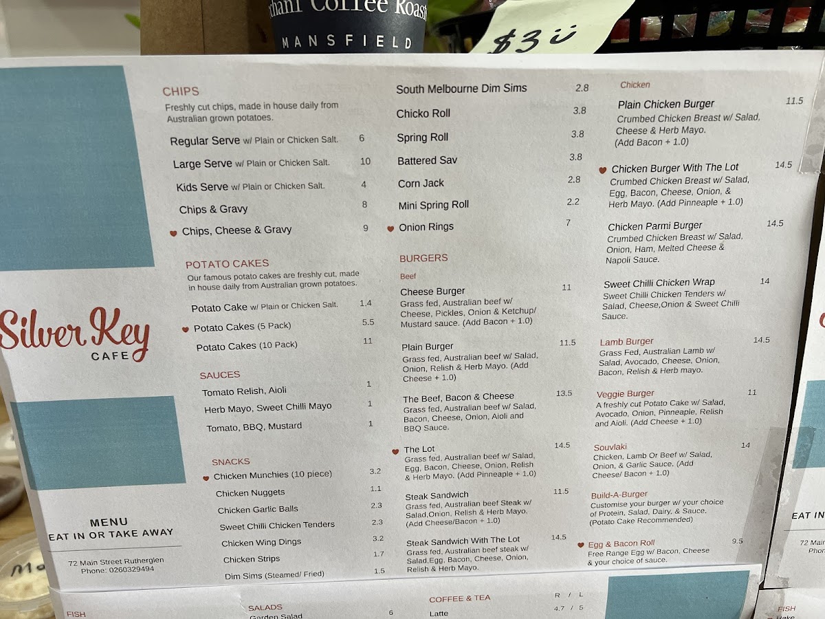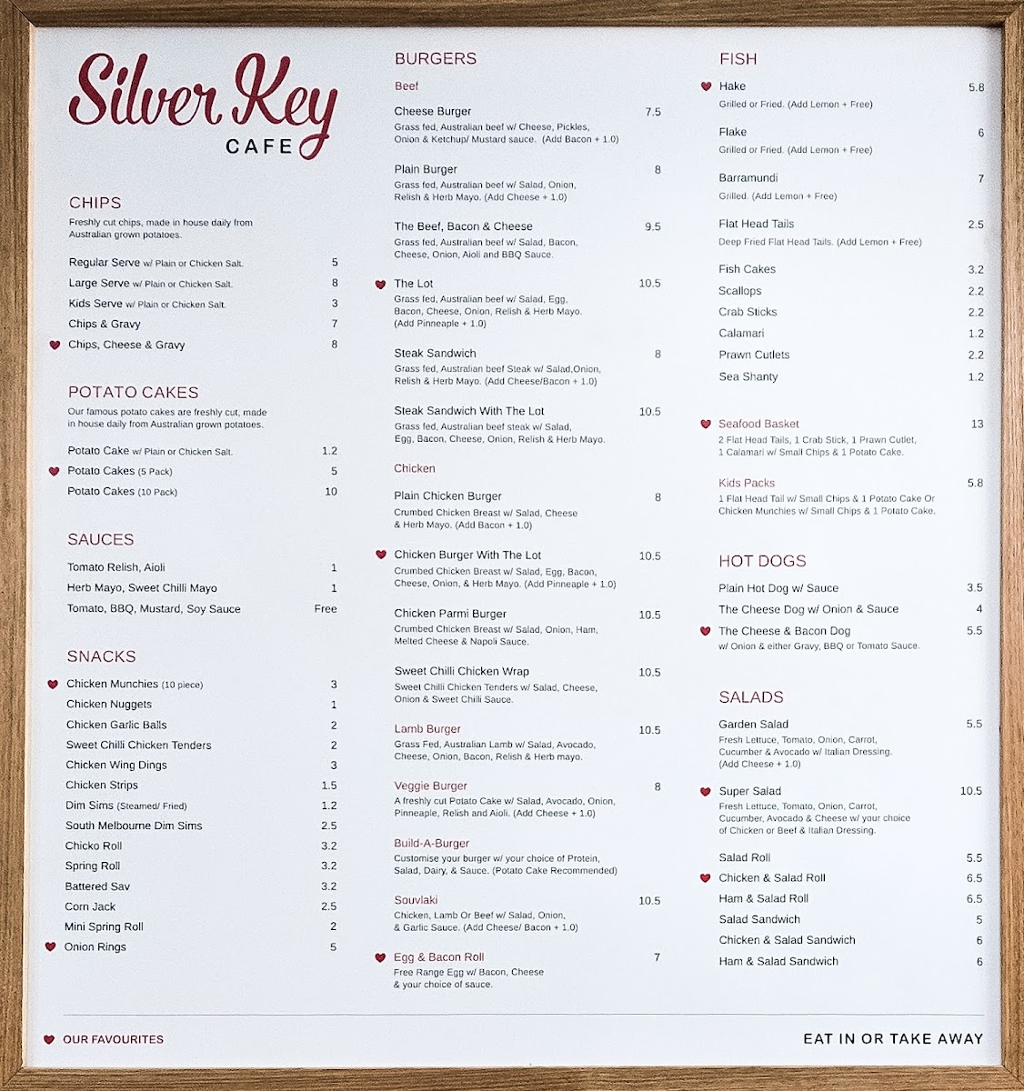 The menu at Silver Key Cafe features a range of options suitable for various mealtimes, including breakfast, light meals, and snacks. Visitors can choose from fast food-style items as well as classic cafe offerings, making it convenient for both quick orders and casual dining.